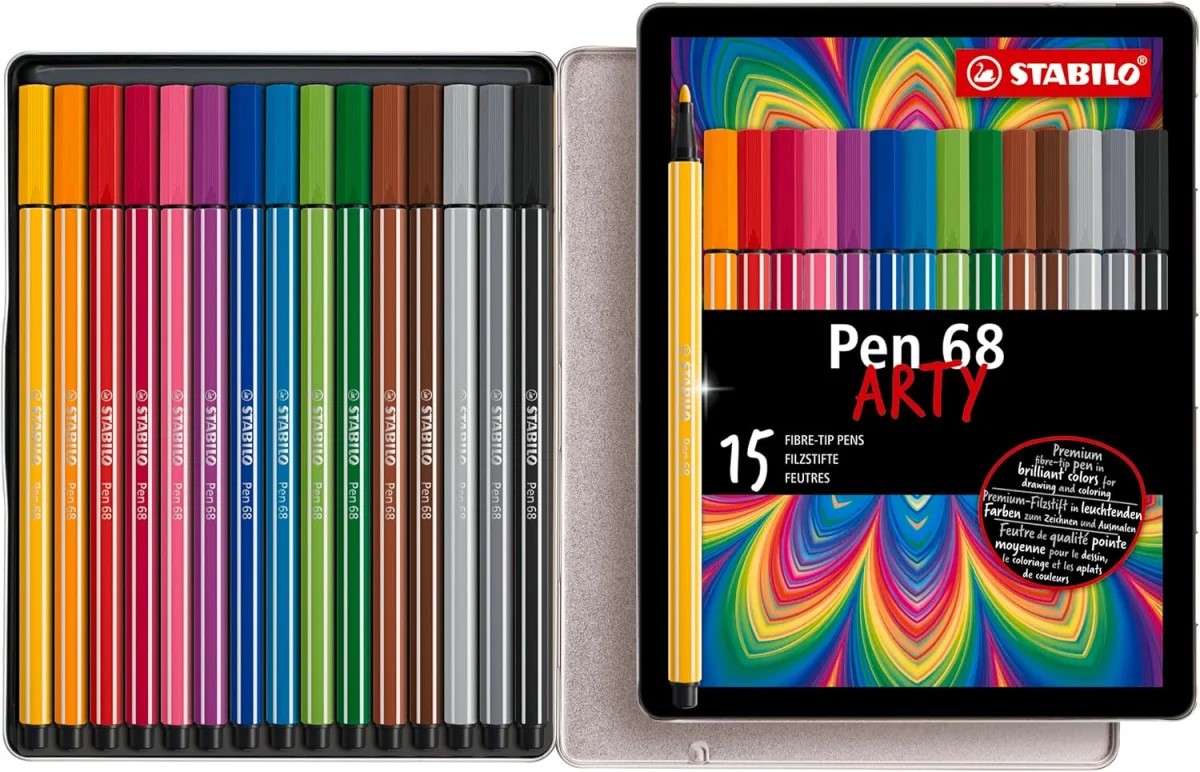 STABILO Pen 68 ARTY – Set premium flomastera (15 boja u metalnoj kutiji)