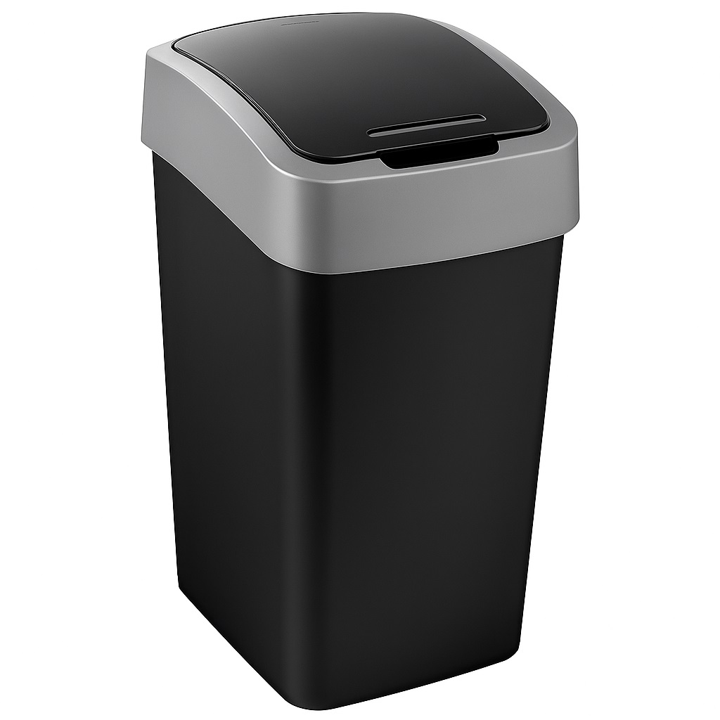 Kanta za otpatke CURVER 45L u crno-sivoj boji spoj je funkcionalnosti i modernog dizajna. Zahvaljujući flip poklopcu, otvaranje je jednostavno i higijensko, bez potrebe za direktnim dodirom. Izrađena od kvalitetne, otporne plastike, lako se čisti i dugotrajna je u svakodnevnoj upotrebi.