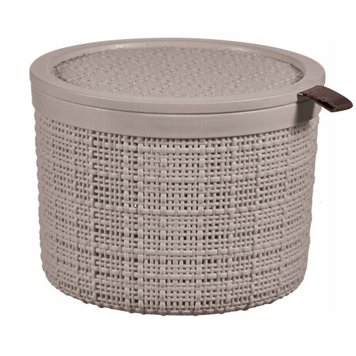 Praktična i estetski privlačna Curver JUTE okrugla košarica izrađena je od 100% recikliranog materijala, a svojom teksturom podsjeća na prirodno juteno pletivo. Ova kompaktna košarica idealna je za skrivanje sitnica u domu ili uredu, a poklopac omogućava diskretno odlaganje sadržaja. Savršeno rješenje za organizaciju malih predmeta dok zadržava moderan i elegantan izgled.