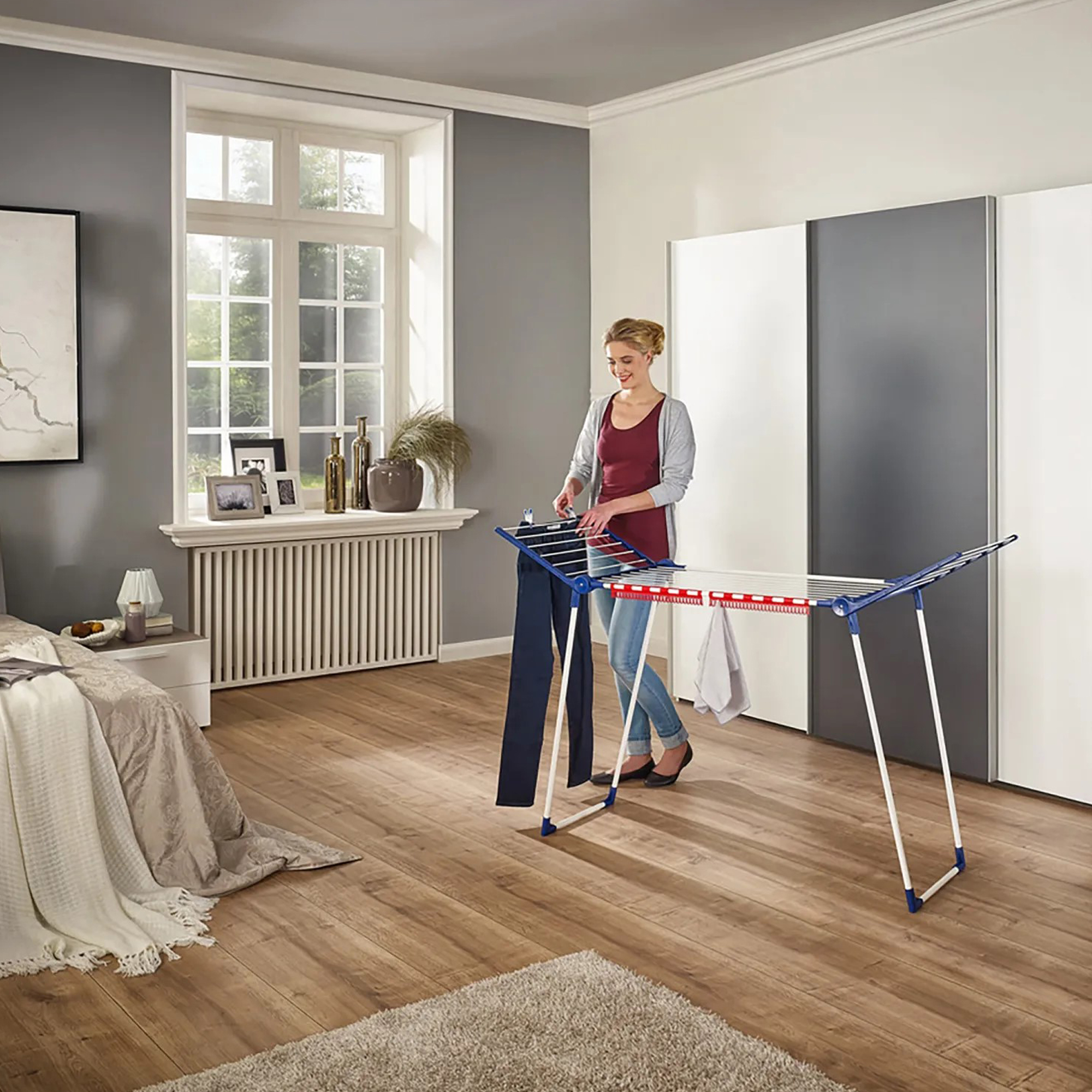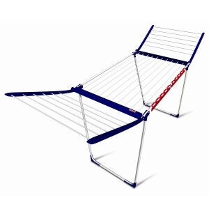 Bočna krila visine 105 cm omogućuju sušenje i dužih komada odjeće, dok ukupna dužina šipki za sušenje od 15 metara pruža dovoljno prostora za gotovo dvije mašine rublja. Nakon upotrebe, sušilica se lako sklapa i odlaže na malo prostora.