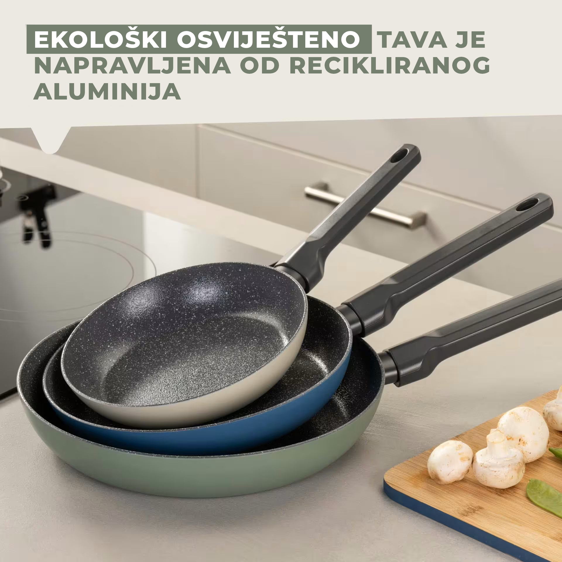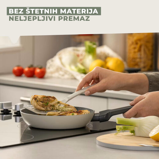 Izrađena je od više od 90% recikliranog aluminija, što je čini ekološki prihvatljivim izborom, dok keramički neljepljivi premaz omogućava jednostavnu pripremu jela bez lijepljenja i s manje masnoće.