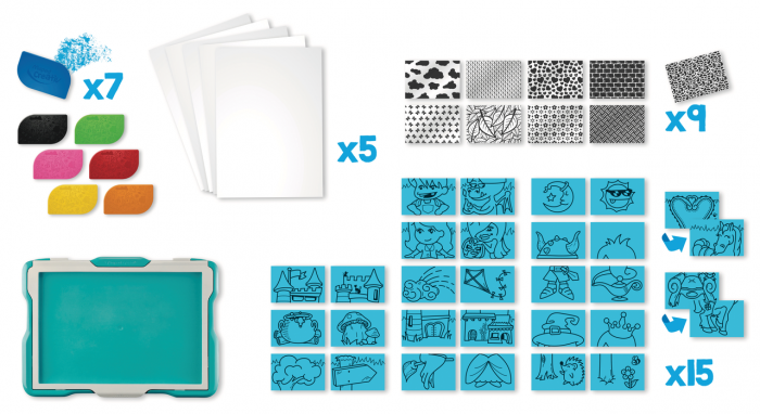 Sadržaj: grafikon aktivnosti, 15 x predložaka, 7 x boja, 9 x uzoraka teksture i 5 x listova